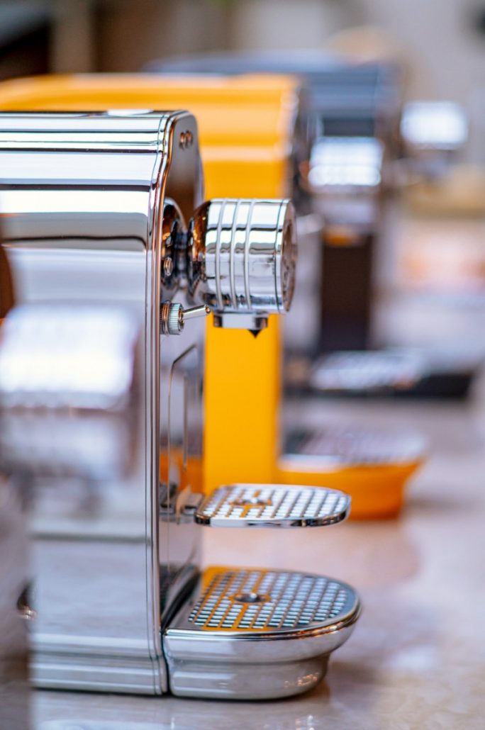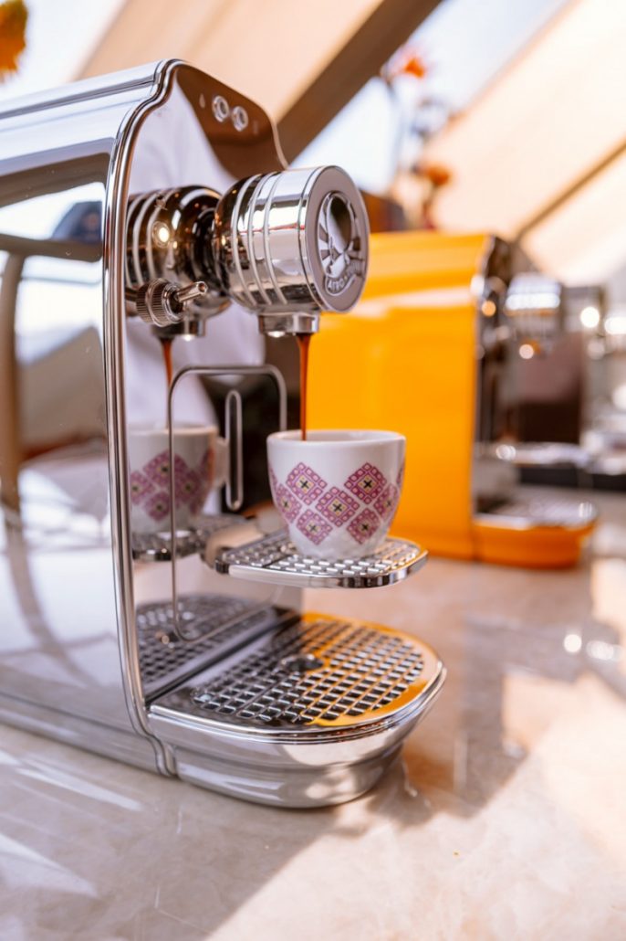 Gestaltet wurde die Kahawa vom renommierten Mailänder Studio deepdesign®, bekannt für ikonische Haushaltsgeräte und elegantes Industriedesign. Ihre geschwungenen Linien, metallischen Oberflächen und die harmonische Formgebung verleihen der Maschine eine Ästhetik, die an klassische Automobile erinnert – formvollendet, funktional und sinnlich zugleich. Sie ist weniger ein Gerät als ein Designobjekt, das Wärme, Stil und einen Hauch italienischer Grandezza in die Küche bringt.